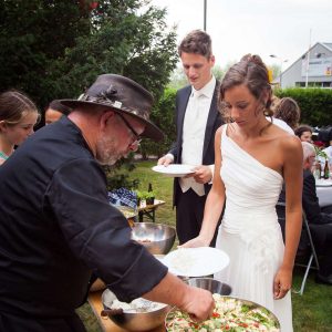 Bij een catering kunnen de gasten alles zien, ruiken en proeven of indien gewenst maken we alles samen met de gasten klaar en koken we in workshop vorm.