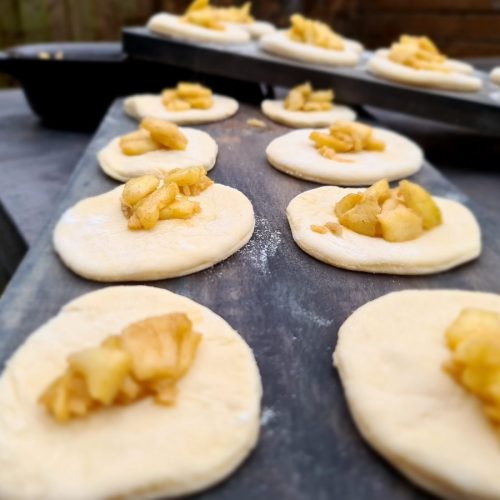 Bakt bij jou elk brood aan probeer dan eens deze Appel dumplings. Eén van de moeilijkste dingen in ‘Dutch Oven land’ is het regelen van de temperatuur. In feite zijn dumplings gewoon gekookt of gestoomd brood en zolang er water in de pan zit zal het niet aanbranden.