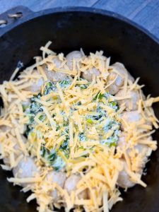 Mooie combinatie met slagroom en een sjalotje toegevoegd! En ja … dit gerecht kan binnen in je electrische oven of buityen in je Dutch Oven.