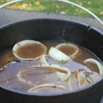 Koken op kampvuur duurt vaak een paar uur als je met een grote groep bent. Om iedereen tevreden te houden en de eerste trek te stillen, serveer ik voor we gaan koken vaak een lekkere soep. Deze uiensoep is daar een goed voorbeeld van. Hij is eenvoudig te maken en past binnen elk budget. En de smaak... maak ‘m zelf maar, hij is fantastisch! Ik kan ‘m van harte aanbevelen. De reacties die ik van mijn gasten terug krijg over deze soep zijn dan ook zeer positief.